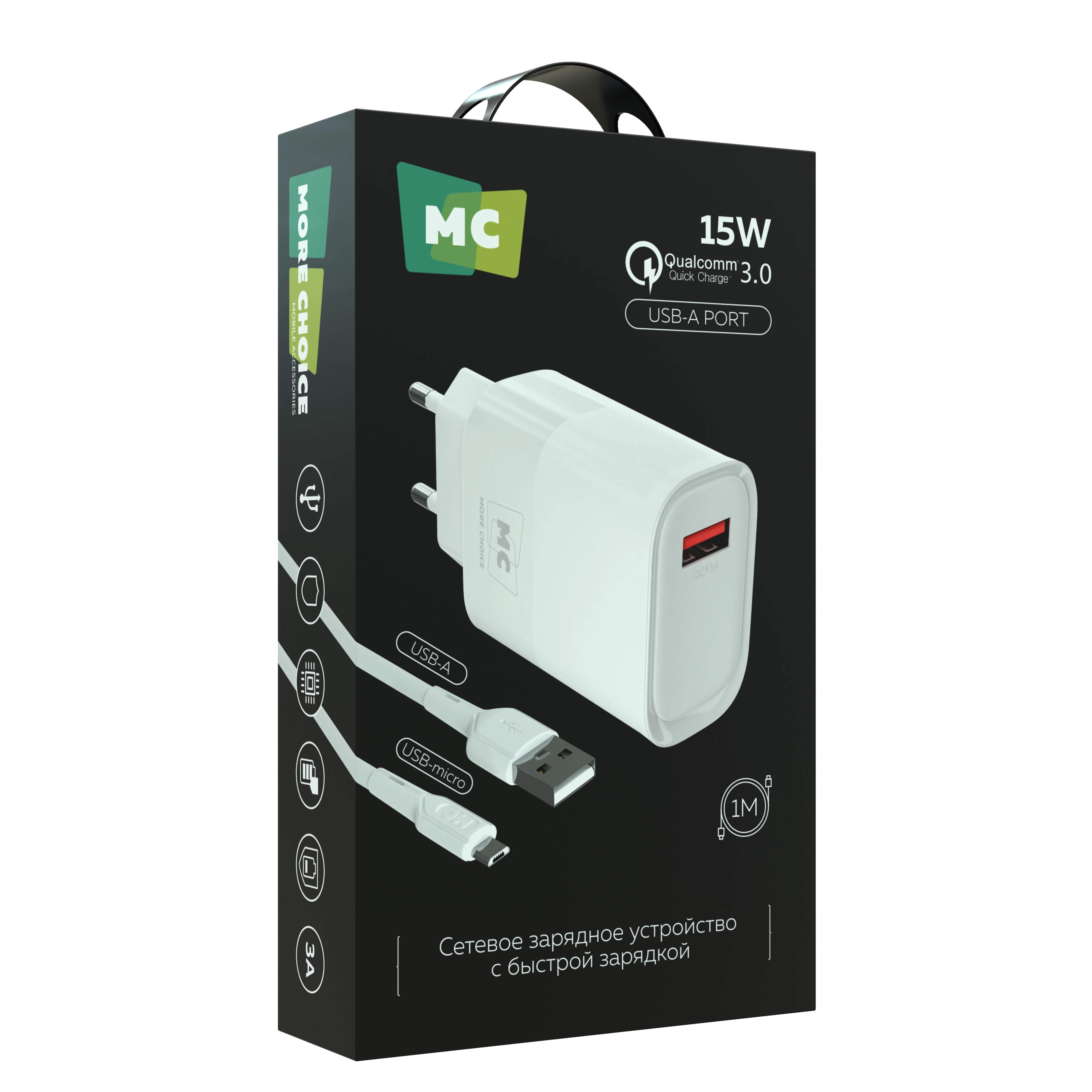 Сетевое зарядное устройство More Choice оснащено разъемом USB-A, что делает его универсальным и совместимым с большинством современных гаджетов. Оно обеспечивает надежную и эффективную зарядку для активных пользователей.