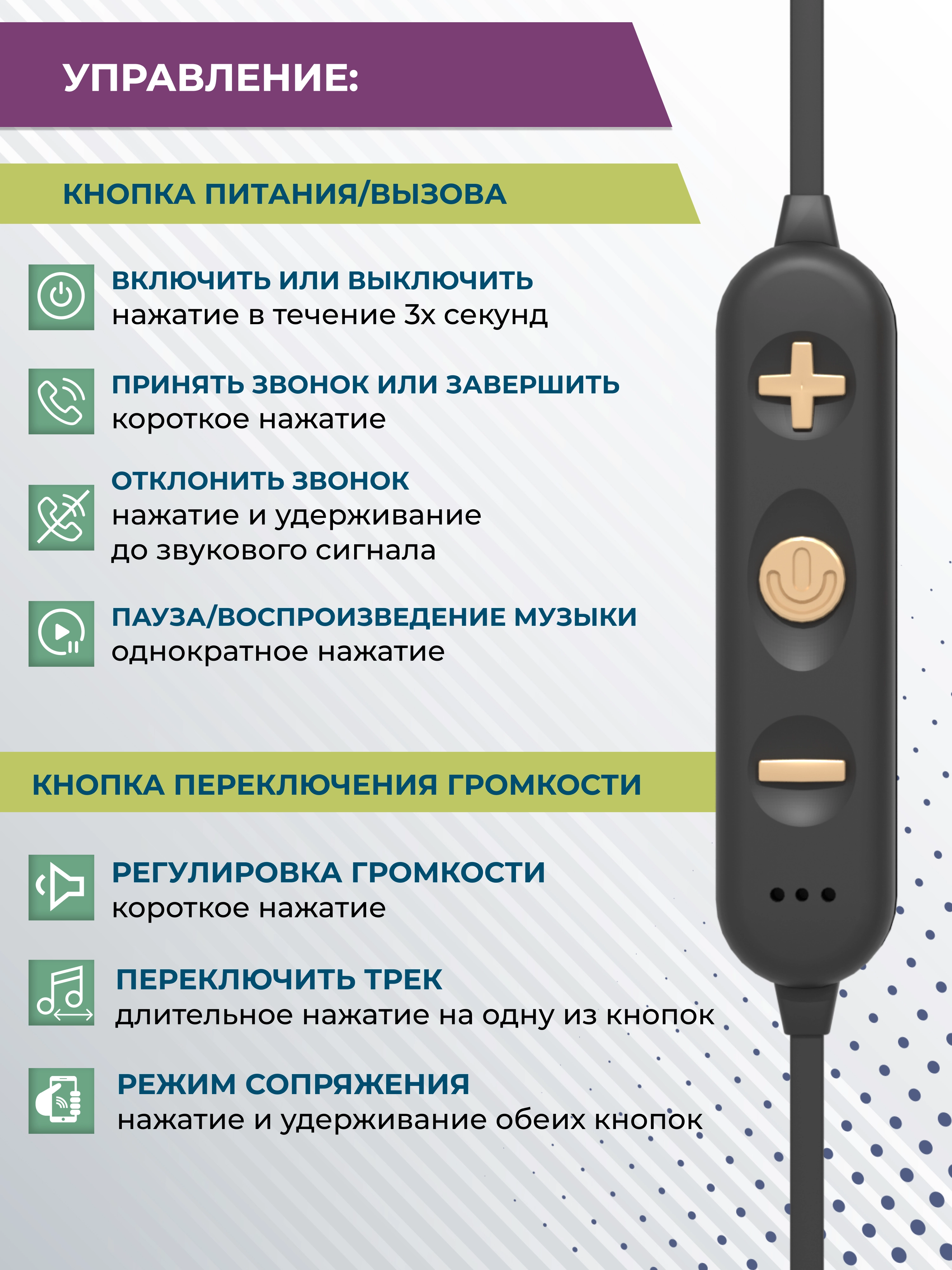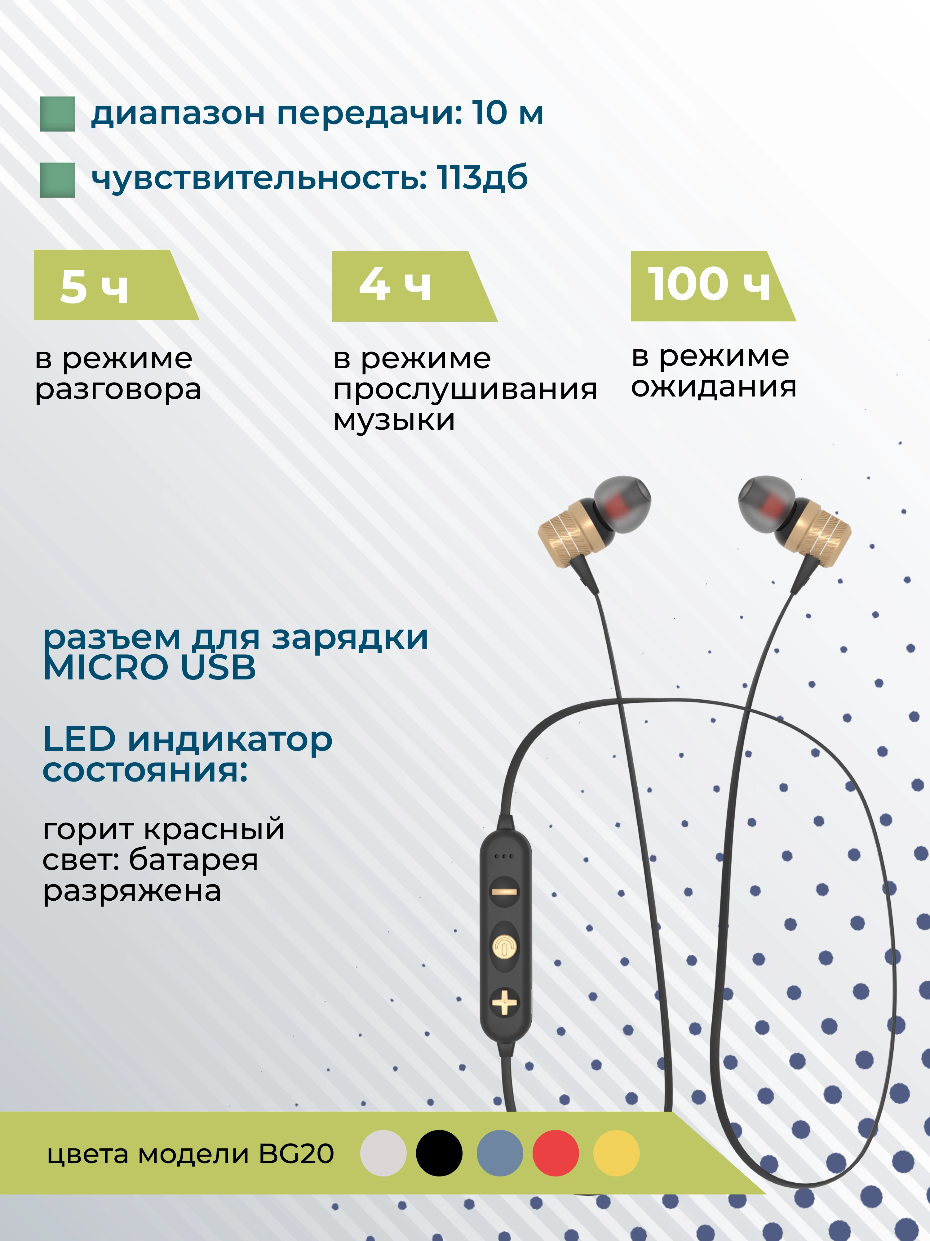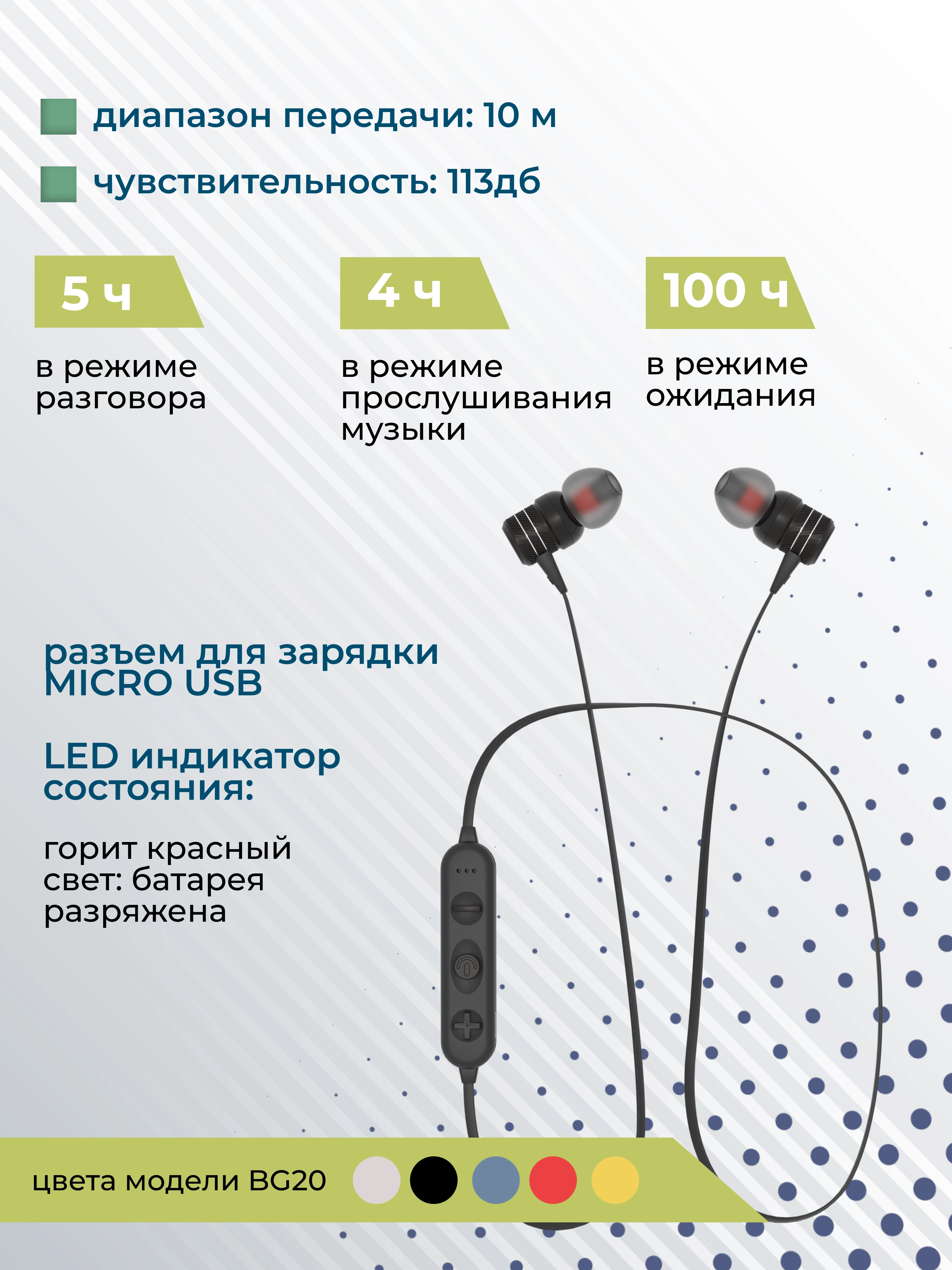 Компактные габариты и шейная дуга обеспечивают комфортное использование, а время работы до 4 часов позволяет оставаться на связи и слушать музыку в течение дня.