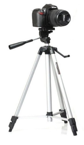 Штатив-тренога из алюминиевого сплава, раздвижной (с регулировкой высоты) от 50 до 135 см. Количество выдвижных секций ножек - 4. Максимальная нагрузка до 3 кг. В штатив встроен уровень, положение штативной головки регулируется при помощи ручки. Штативная головка вращается на 360 градусов.
